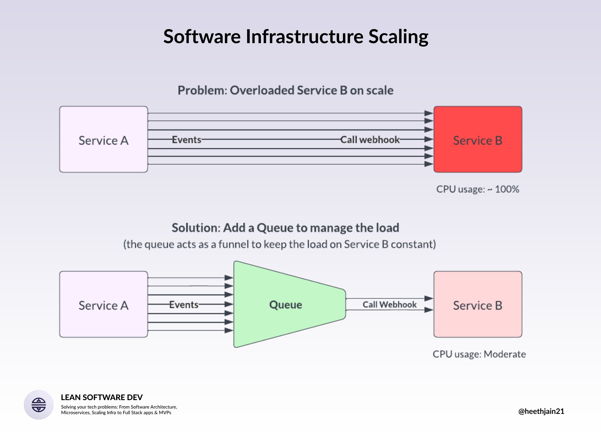 A client shared a problem regarding scaling tech infrastructure they faced recently. The simplest and quickest solution was adding a queue in between to manage the load.