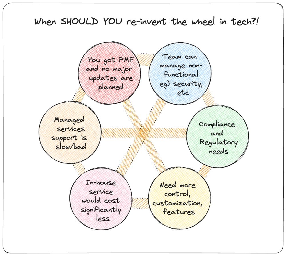 Re-inventing the wheel in tech is challenging, and you must be careful about when and how you do it. Here are the 6 cases when you can, and should re-invent the wheel.